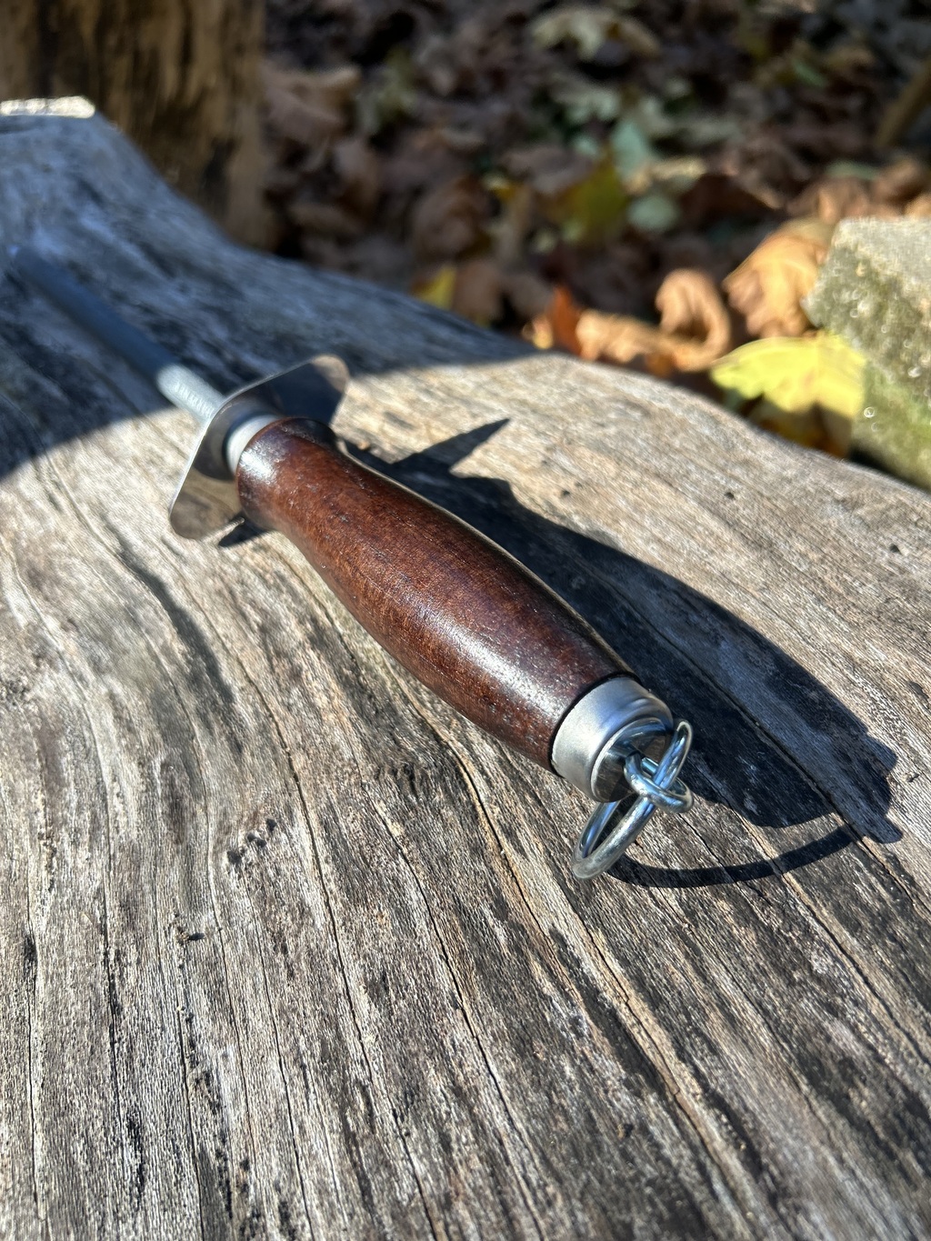 Chaira em aço carbono, temperada através do tratamento térmico por indução, duplo banho de cromo, proteção em aço inox, imantada para garantir aderência das limalhas ao afiar, dureza de trabalho em 65 HRC, excelente empunhadura.
